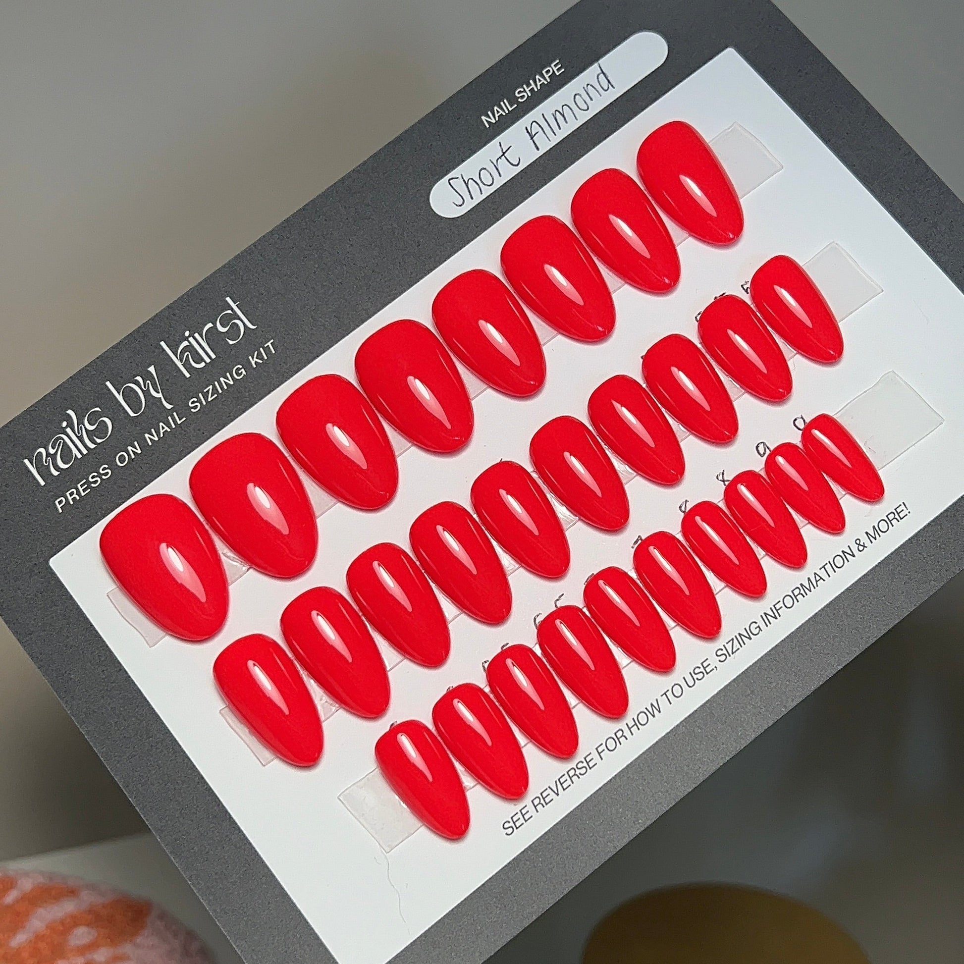 Each kit comes with two nails of every size, painted in your chosen solid colour! This means that you can use the kit to measure your nail sizes, make a note of those and then immediately start wearing the nails included (maybe even while you order your own custom set!).